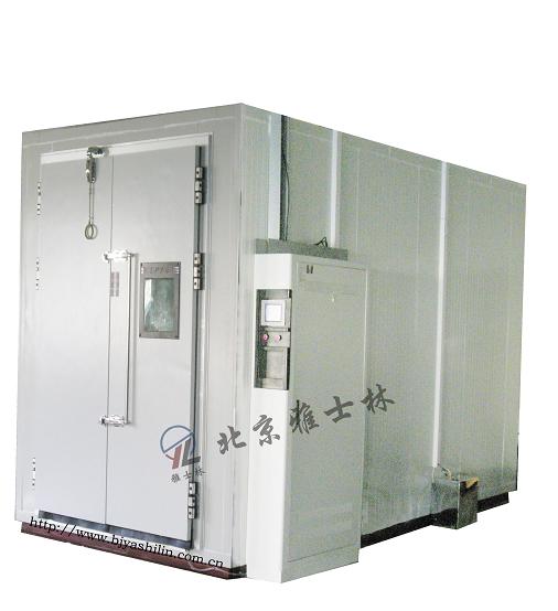 室體(試驗室主體(殼體))分為六個室體面及一扇雙開式室體大門,尺寸為1800×2000 mm,室體材料為內(nèi)膽優(yōu)質(zhì)不銹鋼板(防止長時間在濕度運(yùn)行狀態(tài)下內(nèi)壁生銹),外膽為優(yōu)質(zhì)彩鋼板(國內(nèi)名牌),保溫介質(zhì)為聚氨脂硬質(zhì)發(fā)泡隔熱,質(zhì)輕耐抗擊,隔熱性能佳,大門材料同樣為彩鋼板制成,大門拉手為內(nèi)外開啟式,以便于試驗人員從封閉的室內(nèi)自由開啟大門。